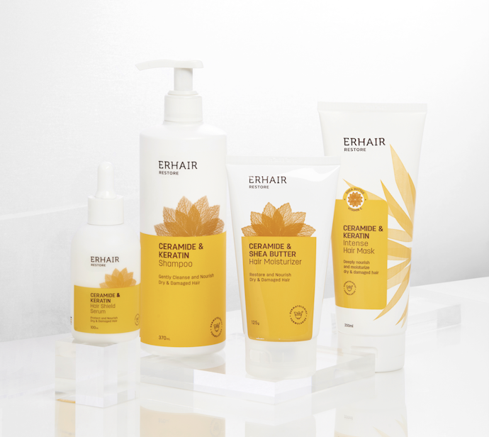 ERHAIR Restore adalah rangkaian produk perawatan dari ERHAIR yang diformulasi khusus untuk rambut yang kering dan rusak. Untuk hasil yang optimal, lengkapi perawatan harian Anda dengan ERHAIR Restore Shampoo, Restore Hair Moisturizer, dan Restore Shield Serum.