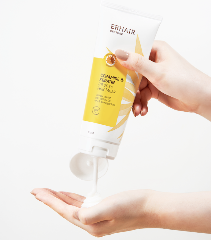 ERHAIR Restore Intense Hair Mask telah teruji secara klinis mampu melindungi rambut yang kering dan mengembang akibat panas matahari dan peralatan styling. Mari kenali lima kelebihan utama ERHAIR Restore Intense Hair Mask untuk rambut dan kulit kepala yang lebih sehat.
